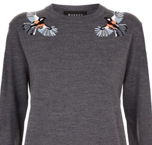 Markus Lupfer embellished-bird-sweater_ AW2017 From https://www.harrods.com/en-gb/markus-lupfer/embellished-bird-sweater-p000000000005643364 Published by knitterjules View all posts by knitterjules