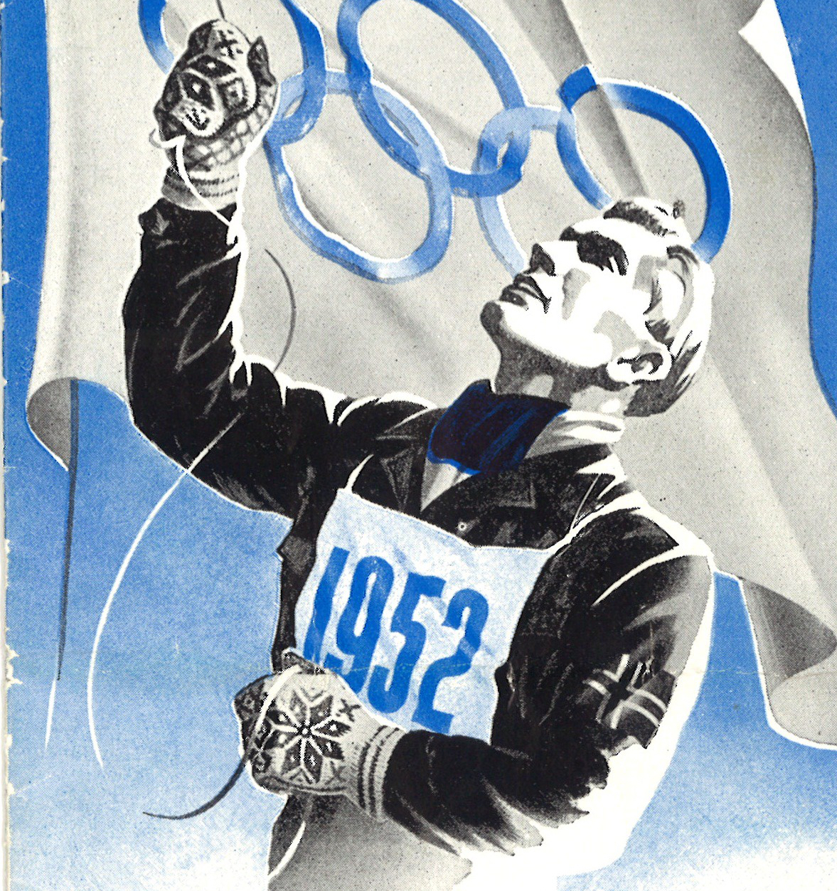 Vintage knitting. 1950s knitwear. Olympics fashion. 1952 Winter Olympics. Vintage mittens. Nordic colourwork. From https://commons.m.wikimedia.org/wiki/File:Brochure_Winter_Olympics_1952_Oslo.jpg