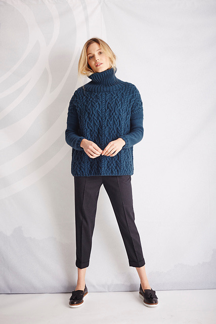Kykuit Sweater by Michele Wang. An oversized sweater with all-over cables design and polo neck. Knitting pattern. Winter knitwear. From https://www.ravelry.com/patterns/library/kykuit-sweater