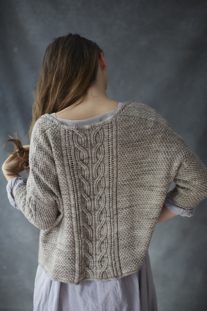 Oversized, cropped sweater with central cable motif and textured all-over finish. Designed by Norah Gaughan. Pattern available at ravelry.com. Autumn Winter 2018-2019. New season fashion. Knitting inspiration.