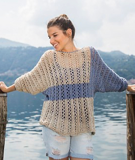 Letizia Pullover by Filatura Di Crosa Italia s.r.l. (https://www.ravelry.com/patterns/library/letizia-pullover). Spring Summer 2019. Fashion. Summer knitwear trends. Knitting inspiration. Summer knitting inspiration. Summer knitting patterns. Fashionable knitting patterns.