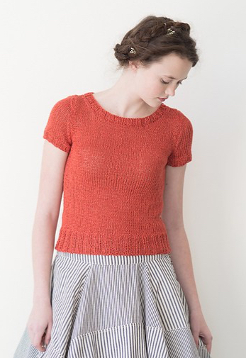 Hibiscus by Pam Allen (photo copyright Quince & Co.) (https://www.ravelry.com/patterns/library/hibiscus-8). Spring Summer 2019. Fashion. Summer knitwear trends. Knitting inspiration. Summer knitting inspiration. Summer knitting patterns. Fashionable knitting patterns.