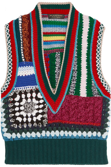 Summer knitwear. Trending fashion. Catwalk fashion. Spring Summer 2018. Lace knitting. Knitting. Summer knitting. Crochet. Summer crochet. From https://www.net-a-porter.com/fr/en/product/992872/Burberry/patchwork-crocheted-vest-